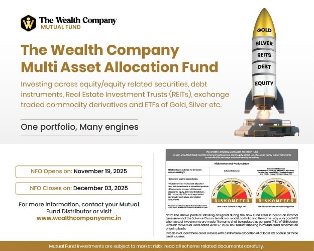 भारत की सबसे तेज़ी से बढ़ती एएमसी में से एक, पैंटोमैथ फाइनेंशियल सर्विसेज ग्रुप के तहत द वेल्थ कंपनी एसेट मैनेजमेंट होल्डिंग्स प्राइवेट लिमिटेड ने ‘द वेल्थ कंपनी मल्टी-एसेट एलोकेशन फंड’ लॉन्च किया है। यह ट्रू-टू-लेबल हाइब्रिड, कमोडिटी-एंकर्ड मल्टी-एसेट फंड इक्विटी, डेट और कमोडिटीज को सक्रिय रूप से संतुलित करेगा। इस प्रकार, यह निवेशकों को बाजार चक्रों में एक लचीला और अच्छी तरह से विविध पोर्टफोलियो बनाकर दीर्घकालिक संपत्ति बनाने में मदद करता है। नया फंड ऑफर (एनएफओ) 19 नवंबर, 2025 को खुलेगा और 3 दिसंबर, 2025 को बंद होगा।